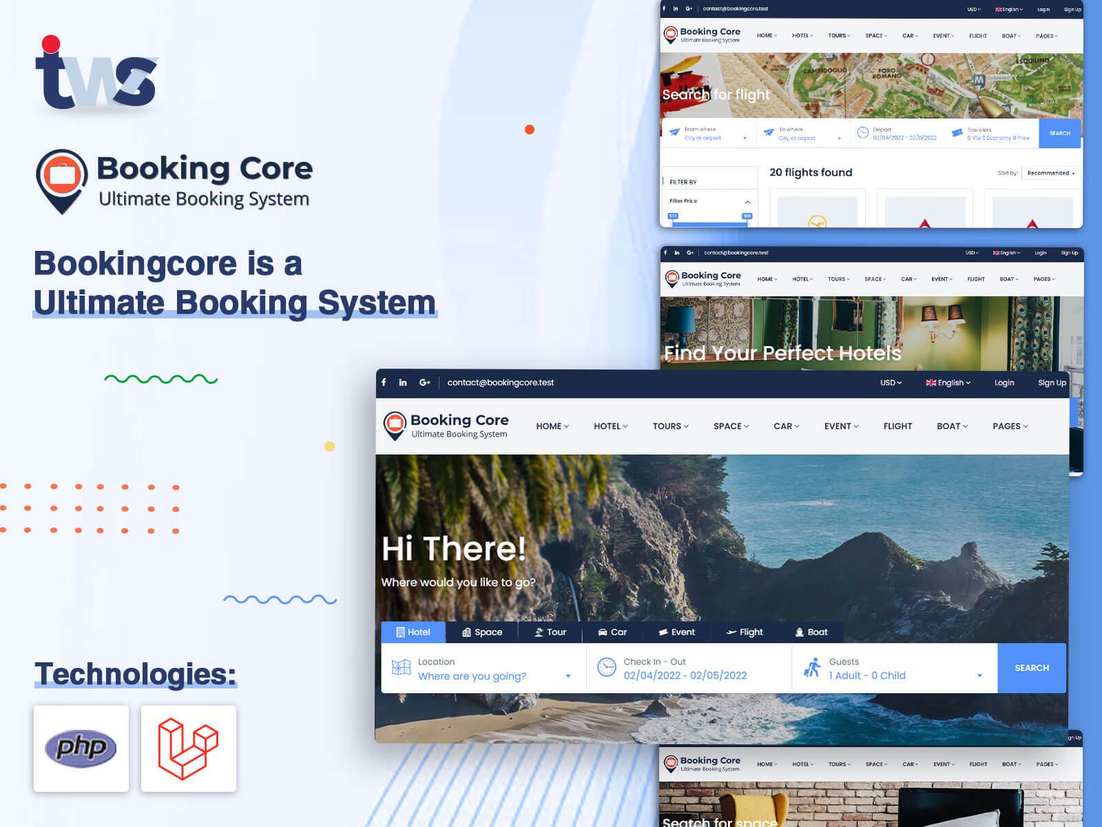 Booking Core is a Booking System based on Laravel, designed for a travel website, Marketplace, Travel Agency, Tour Operator, Room Bnb, Villa Rental, Resort Rental, Make Travel website. With 6+ years working on travel products we confident to bring to you best product for your travel site with optimized UX/UI, friendly on mobile on the search engine.