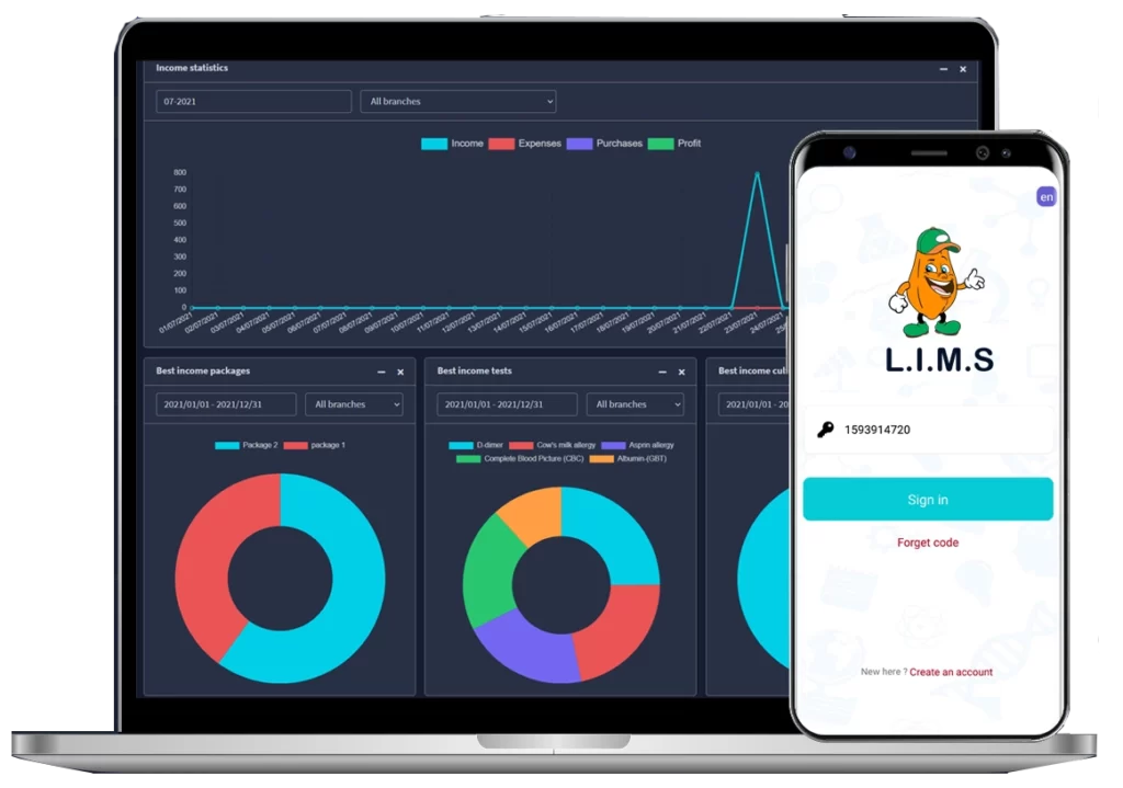 LIMS is an integrated website and mobile application to manage the medical laboratories system, as it fulfills all the needs of medical laboratories from all their professional aspects, as it allows the users of the system the results of medical tests and facilitates communication and cooperation between laboratory employees and extracts all the required reports from the laboratory. Patients can follow up test reports, lab branches, and submit a home visit request.